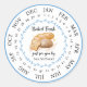 This adorable sticker will help you keep track of the freshness of your baked goods! It features watercolor bread illustration with the text "Baked Fresh just for you by" and a line of customisable text to enter your name or the name of your business. The outer text includes 12 months and 31 days. Circle the month and day to indicate the date your item was baked. Black, White and Blue.
