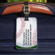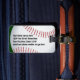 Customise this classy luggage tag with the name of your favourite team as on one side and with your contact information on the other. The white baseball is nicely set off by the dark green background.
