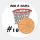 Customisable Basketball stickers featuring a basketball and net, and a place to add your name and player number!