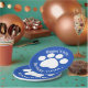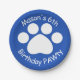 These paper plates display a white paw print on a blue background with the text of your choice. They are great for paw print themed, dog themed, cat themed, or animal themed birthday parties.