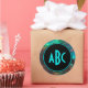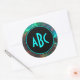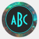 Customisable Black and Aqua Three Letter Monogram Classic Round Sticker