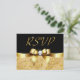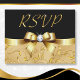 Lovely Customisable Black and Gold RSVP Cards with Your Text typed into the one text box template. You or Designer Linda: 239-949-9090 can Change black to any COLOR. CALL Zazzle Designer: 239-949-9090 to design your black and gold response cards, wedding or anniversary invitations and party supplies.