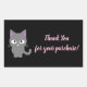 A customisable cute black Thank You rectangle sticker with grey cat to express your appreciation towards your customers for purchasing your products. Your customers will love these thank you stickers.