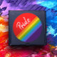 Cool and festive party design with slanted rainbow gay pride flag, because pride goes all the way up! Text on both sides can be easily personalised.
