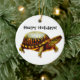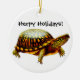 Original fine art design of a colourful box turtle by illustrator Carolyn McFann of Two Purring Cats Studio on a customisable ornament for reptile lovers.