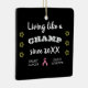 Living like a champ since YYYY, breast cancer proud survivor | pink ribbon, glowing yellow stars | fully customisable text, for dark background