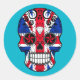 Customisable British Flag Sugar Skull with Roses Classic Round Sticker