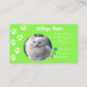 Elevate your cattery's brand with our customisable business card design in a lush lawn green hue. The front showcases a delightful photo of your feline residents, capturing the essence of your cattery's charm. On the back, your cattery's name takes centre stage, accompanied by all pertinent contact details. This sleek and customisable business card is the purr-fect way to make a memorable impression on cat enthusiasts and potential clients alike.