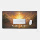 The sun rises as a solitary, silhouetted figure stands in the centre of a forest clearing to greet the golden light of the heavens. Fluffy clouds part as the great star casts its fiery rays onto the world, illuminating everything in its glorious warmth. Let this magical scene grace the surface of your desk or table to bring you the promise of another day and the beauty of the sun. Designed to protect your surfaces and provide a smooth mousing experience, this jubilant design is sure to bring a celestial glow to your computing experience.