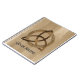 Simple coloured Celtic triquetra interlaced with a circle forming a trinitarian symbol craved against a wood background, representing spiritual unity with the divine. Customise it with your name!