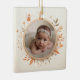 Capture the magic of your baby's first moments with this enchanting customisable ceramic ornament. Designed with a delicate fairy frame, this ornament features one adorable fairy surrounded by soft, pastel-coloured leaves and flowers, creating a whimsical setting for your favourite baby photo.