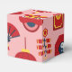 Celebrate the Chinese Lunar New Year with our Festive Chinese New Year Lucky Red Icons Favour Boxes featuring modern pattern with illustrations of gold coins, blossoms, lion dancer masks, fans, fortune cookies, firecrackers, ying yang symbols, red envelopes and red lanterns on a light pink background.