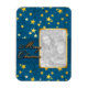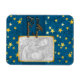 This magnet, carrying your photo in a frame of stars on blue background with golden words "Merry Christmas" makes a nice gift for friends and family.