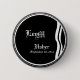 Classic Black and White wedding design button. Replace Usher's first name and last name initial with correct information, and the date of your marriage on this elegant keepsake button, in the "Personalise It" box on the right of this product page. You may choose to change and/or delete any of the information on button. Font, font colour and font size may also be changed.