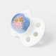 Original fine art design of little clownfish in their anemone by artist Carolyn McFann of Two Purring Cats on a customisable baby pacifier for little fish fans.