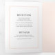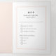This elegant all-in-one wedding invitation design features simple yet elegant frame on each panel of the invitation. The background colour is a pale blush pink with classic typography. The inside of the card features the invitation, wedding details, and an rsvp card that can be cut and mailed. Please note, the rsvp card requires standard first class postage (not postcard rate).