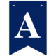 This customisable swallowtail CONGRATULATIONS! party bunting has a navy blue background on it with white lettering. You can customise the white lettering on the bunting banner in whatever way you want and you can also change the background colour to another colour by using the blue edit design to enter the design tool area to change the font, font colours, etc.