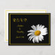 The text on this daisy wedding response (rsvp) card is fully customisable. To change the wording, use the personalise options. To change font, font colour, or the background colour, you can use the customise option. The colours for this response card are black, white, and golden yellow. It would also look nice with a navy background or dark blue background. The wording on this card could be changed to become a reception card, accomodation card, or direction card as well.