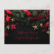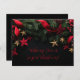 Celebrate the festive season with this elegant Christmas card, featuring a beautifully detailed wreath adorned with red ribbons, golden stars, and lush green pine. The luxurious dark background enhances the festive elements, creating a sophisticated and warm holiday greeting. The front of the card includes a heartfelt message, "Frohe Festtage und ein gutes neues Jahr!" (Merry Holidays and a Happy New Year!), while the back offers fully customisable text and address fields, allowing you to personalise your holiday wishes for loved ones. Perfect for sending a touch of elegance this Christmas.