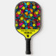 Bright yellow pickleballs add a lively and dynamic element to the pattern, capturing the essence of the sport. Positioned with purpose, they suggest movement and action, conveying the spirited nature of pickleball.