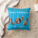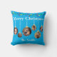 String of bright Christmas lights on top with Merry Christmas underneath and dangling customisable photo ornaments. Add an image of each one of your family members, or your pet. Makes a great accent to any chair, couch or bed.