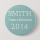 Personalise this family reunion blue background button with the name and font of your choice.