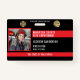 The customisable fire department ID badge features a firefighter emblem at the top that can be customised to your department as well as a place for the state logo as well. Customise with the firefighter's photo on the left. Beside the photo, the firefighter’s name, badge number, rank, and department are displayed. Add your own barcode to the back of the card, along with issue and expiration dates, and description of the firefighter, captain, chief, or office employee.