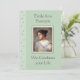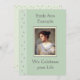 Feminine Photo Remembrance Card with Flower Motif A passing is a sad occasion but also an opportunity to celebrate a life that brought joy and love. This feminine and pretty card, which can be used as an invitation to a living funeral or to a more traditional service or wake, has been created to celebrate a female relative or friend. No black in sight, just soothing tones of green and a delicate flower motif. Simply replace the portrait with a picture of the person you wish to commemorate. The reverse is fully customisable to create a personalised invite or keepsake.