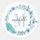 Customisable Floral Monogram Blue Spring Classic Round Sticker