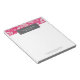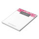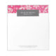 Customisable Pink Floral Note Pad. This modern and stylish notepad is perfect for anyone in the event planning, beauty and fashion industry. The notepad is part of a branding suite that can help any new business look professional and established. See entire suite for more promotional products. Collection designed by Colourful Designs Inc. Copyright 2015