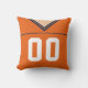 Easy to edit football or lacrosse custom jersey design throw pillow. The colours of this design is orange and navy blue trim, the 'skin' colour can be changed, just click 'CUSTOMIZE' to choose a different colour. Just use the boxes to the right of the image to insert your own choice of name and number on the back and number on the front.