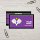 Customisable Business Cards for pickleball coaches. White crossed pickleball paddles with customisable text on both sides. Pickleball court at the back