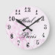 Give a flair to your home decor with our customisable French Country wall clock. Leave it as it is - with the words "Hotel de Paris" and the pink floral background, or change the words and background to your liking.
