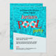 The design features vibrant water pool ripples and a playful lifesaver illustration, adding a touch of aquatic charm to the invitation. The fun red, blue, and yellow colours create a lively and energetic atmosphere, setting the tone for a memorable pool party experience.