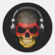 Customisable German Dj Skull with Headphones Classic Round Sticker