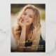 Celebrate your graduation and spread the joy with our stunning Modern Script Customisable University Graduate photo Class year and school Real gold foil holiday card. This card is specially designed to showcase your achievements with a touch of elegance and glamour.