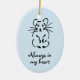 Add Your Hamster's Name to Reverse of Keepsake Create a keepsake of a much-loved furry friend. This hamster memorial ornament shows an ink drawing of a sitting hamster and has the slogan 'Always in my heart' (which can be changed to plural if required). You can add your own hammy's name to the reverse. The ornament is a soft blue shade.