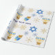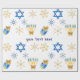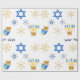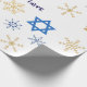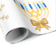 A festive Hanukkah wrapping paper design featuring the Star of David, playful dreidels, elegant menorahs, and a mix of gold and indigo snowflakes for a warm seasonal touch. This design includes dedicated space for your own custom image and personalised text, making it perfect for gift-giving, family celebrations, or adding a thoughtful touch to your holiday parcels. Printed with crisp detail and rich colours, it brings a joyful charm to every present you wrap.