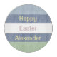 Horizontal pastel light blue, light green and dusty blue striped pattern and customisable text: Happy Easter. Click edit to change the text and name to your liking,