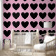 The design features black hearts on a pink background in a simple pattern. The black colour of the hearts is customisable should you wish to personalise it to match your preferred colours/ space palette.
