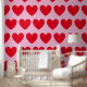 The design features red hearts on a pink background in a simple pattern. The red colour of the hearts is customisable should you wish to personalise it to match your preferred colours/ space palette.