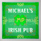 Create your own custom, Irish pub, home bar wall poster using this template. The poster is made to look like old green wood with plenty of vintage flourishes in shades of green, white, orange and gold. There are also five shamrocks / clovers in the design. These posters can be personalised with your own name, initials / monogram and the year your brewery, bar or Ireland-themed man cave was established. Just fill in the easy diy template or click "Customise It" if your text runs long & you need to resize, rearrange or change text colours & fonts. These are perfect for Saint Patrick's Day or all year long. See matching items in our store!