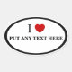 This "I Love" Euro style auto sticker is customisable. Use your own text to express what or who you Love. Love Animals, Food, People, Countries, Cities, States, Music, and Sports, to name a few. Also choose any background colour by selecting "Customise it>edit>background" Get creative! See my other "I Love" items too!