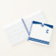 8.5" x 8.5" Spiral Notebook with laminated covers, and a choice of paper style, including sketchbook, ruled, half ruled, graph. The front and back of the notebooks have customisable jersey style designs, allowing you to add your own choice name and number to the back, and an 'A' or 'C' or number on the front, use the boxes to the right of the image to change the text.
