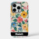This delightful phone cover showcases a heavily textured, impasto oil painting style, featuring an abundance of vibrant, raised flowers in shades of pink, yellow, and blue, with lush teal leaves. The artistic, tactile design brings a fresh, blooming garden aesthetic to your device. A sleek black bar at the bottom offers personalisation with a name like "Elizabeth"; if you don't want a name, you can remove it and any other elements you don't like from within the design tool, crafting a truly bespoke smartphone accessory.