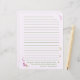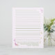 Design features a pale, purple background to green lines for writing on. Image of flowers and falling leaves are depicted on sides. A bible verse is displayed in a lovely green at bottom of page and may be replaced with your own message. Reverse bears the same purple background to a single flower.