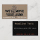 Bold, graphic, original fully customisable business card template to promote your junk hauling business. Masculine work boot print against neutral background with no nonsense lettering. Edit text and colour to suit. Great gift for someone in the job market - especially suitable for someone in the area of manual labour, construction, welding, hauling, plumbing, electricity, building, roofing, landscaping etc....where men keep it straight and no nonsense.
