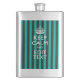 Customisable Keep Calm Your Text Turquoise Stripes Hip Flask