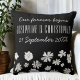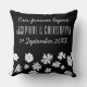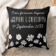 Chic modern black and white square throw pillow as personalised memory wedding keepsake, gift for newlyweds or housewarming, for new home owners.Add your names and a significant date for you, as a wedding date, or moving tougher date, or moving into a new home date etc.Elegant white calligraphy handwritten script and subtle wildflowers hand drawn pattern on neutral nuances, easy to match in any ambient.