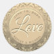 Customise this gold foil look wedding sticker with the word love as a seal for invitations, favours, decor and more.